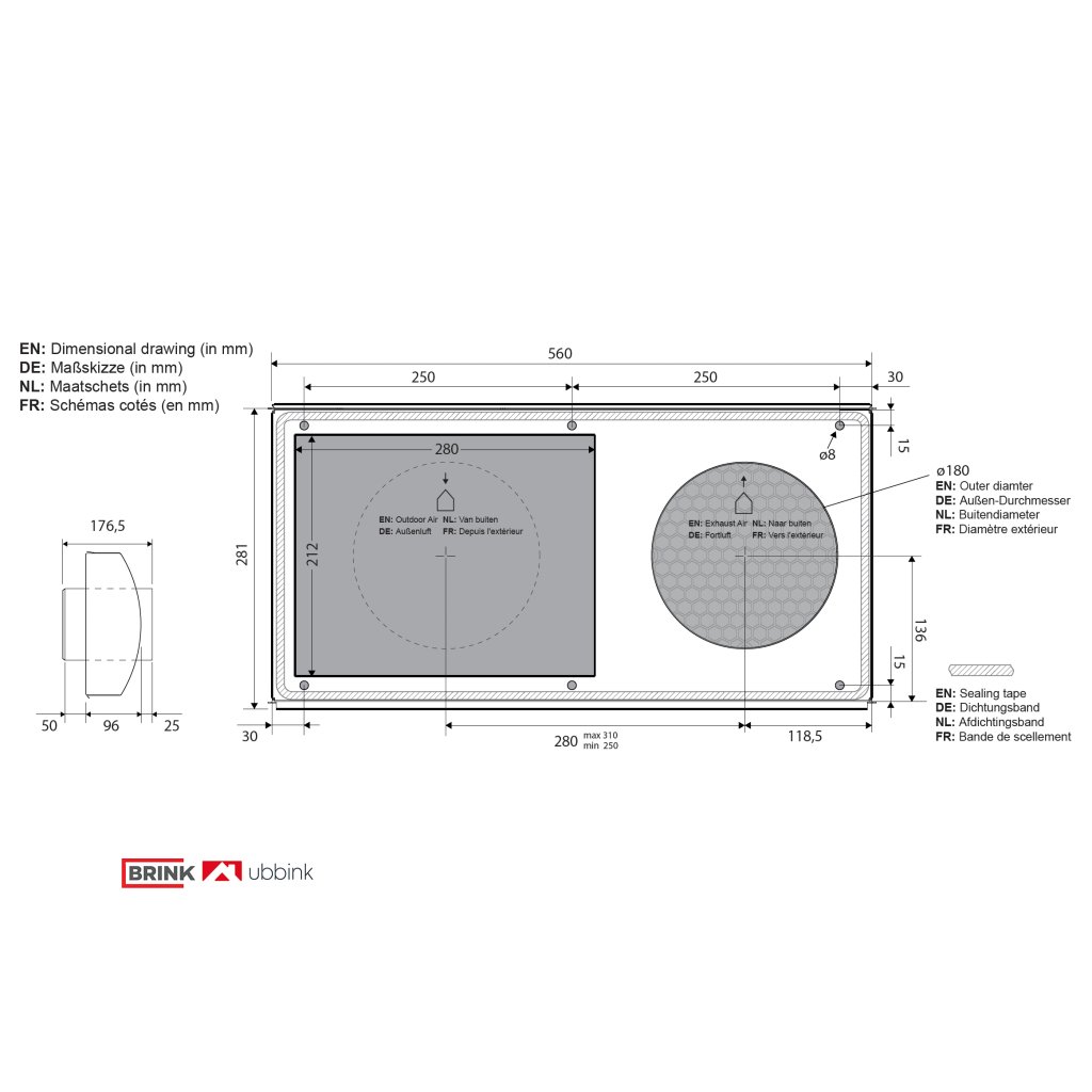 Robustná kovová stenová výustka je určená pre prívod čerstvého a zároveň pre odvod znehodnoteného vzduchu. Kompaktné rozmery šetria priestor v interiéri, umožňujú použiť kratšie trasy vedúce k centrálnej rekuperačnej jednotke a zároveň uľahčujú jej umiestnenie v exteriéri. Odporúčame kombinovať s izolovaným EPE potrubím DN180mm 188206. Vhodná pre vetracie zariadenia s výkonom do 350 m3/h.