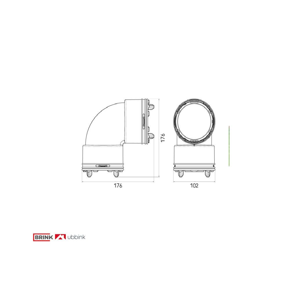 Koleno 90° pre rozvodný systém Air Excellent je vyrobené z prvotného plastu (nie z recyklovaného) a spĺňa prísne normy na hygienický bezzávadnosť. Mikrobiálna odolnosť bola certifikovaná skúšobným ústavom Isega na 99,99%. Kolená sa používajú napríklad pri inštalácii rozvodov do podlahy a umožňujú dosiahnuť nízku výšku a zároveň pevnosť v bode ohybu do podlahy. Premyslený systém tesnení a fixačných krúžkov zabezpečuje vzduchotesnosť testovanú na 2000 Pa bez potreby ďalšieho použitia pások.