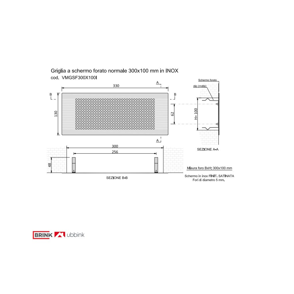 Stenový difúzor s nerezovou perforovanou čelnou doskou 300x100